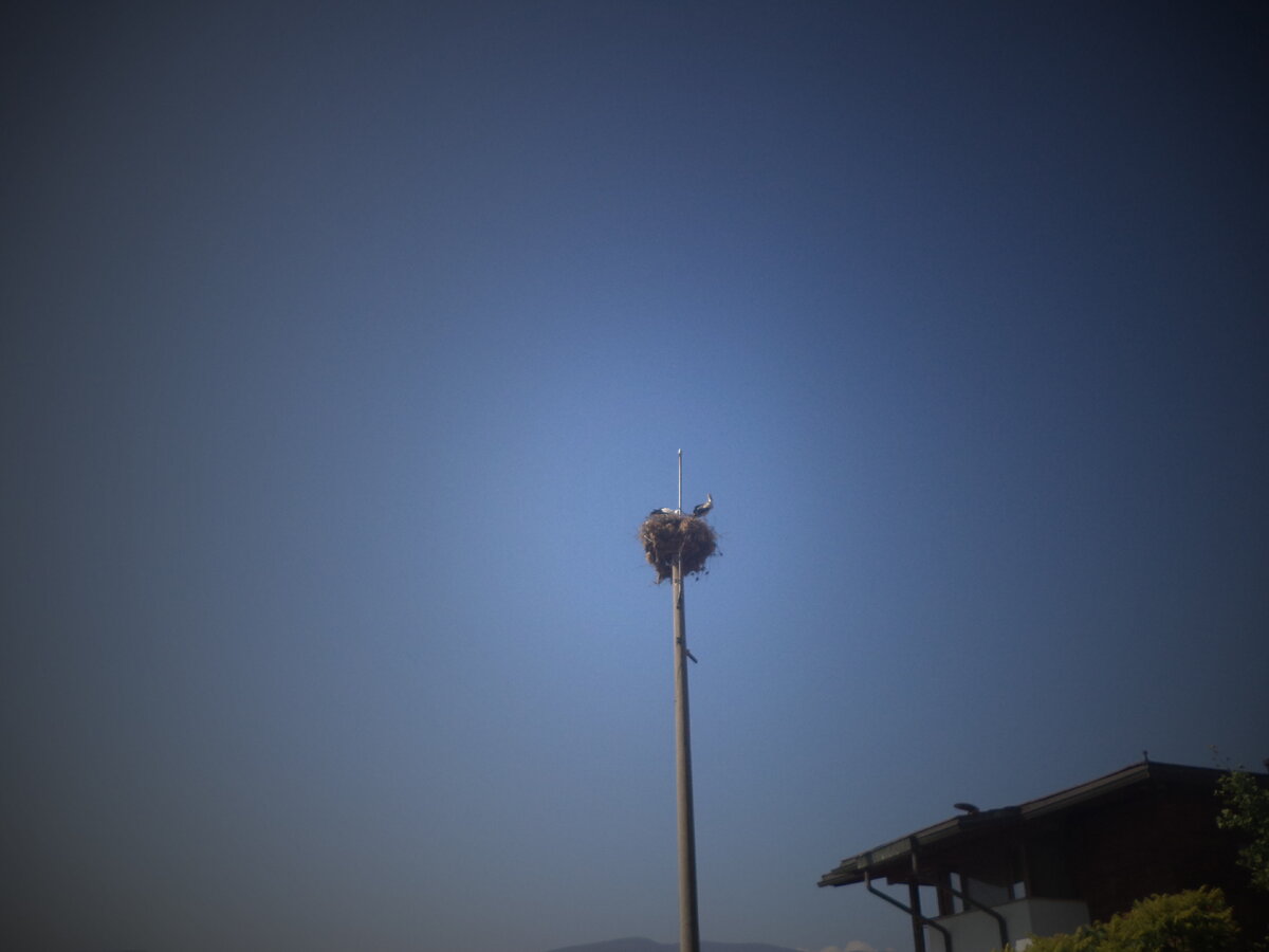 Аисты это хорошо) У деда моего возле дома на столбе аисты жили, тарахтели прикольно) Под гнездом колесо от телеги, думаю дед специально прикрепил, а они выбрали площадку, потомство выводили, улетали и возвращались, спокойно в деревне, нравилось им и навигатор четкий, к дому ведет.