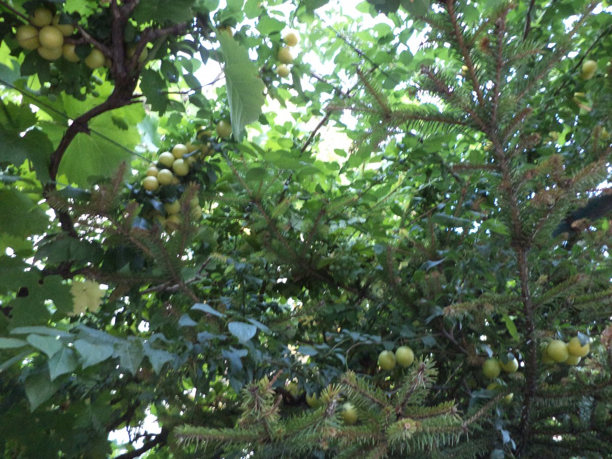 А у меня во дворе вплелись слива,елочка и виноградная лоза.Им очень хорошо.