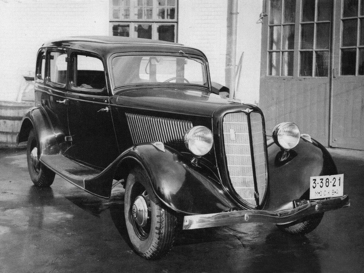первые эмки шли с хромированными кронштейнами фар потом начали красить .