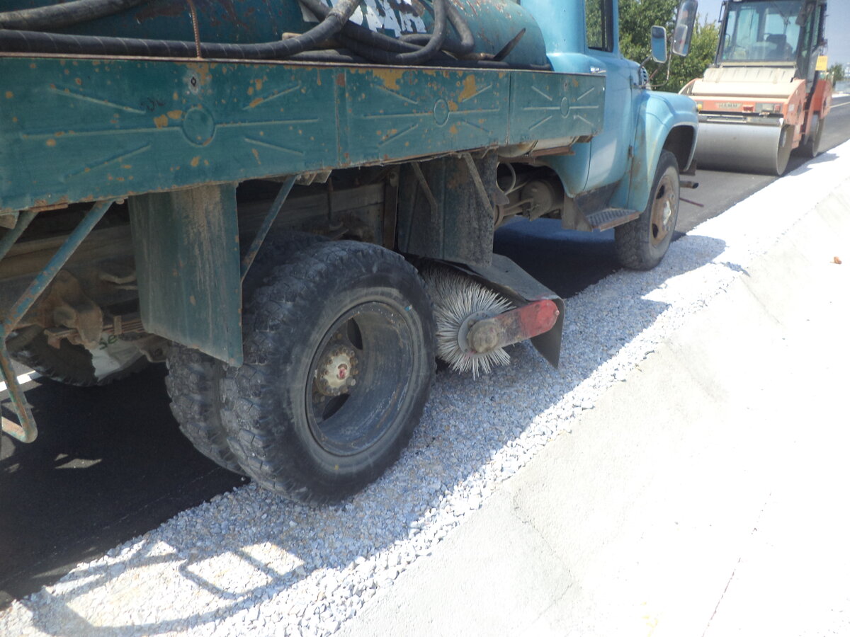 А на трассе Асеновград - Пловдив, во время укладки асфальта сделал детальные снимки водовоза.