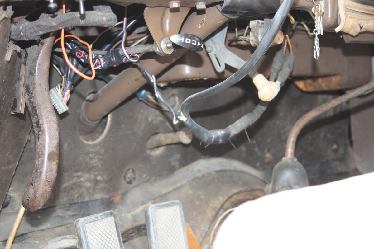 - Частично разворошил проводку удаляя останки сигнализации, выключатель поворотов с рулевой колонки, другие мелкие вторжения. Стартер "от ключа" и генератор переменного тока пока не трогал. НЕ ДОДЕЛАЛ, куча проводов под ногами водителя лежит...