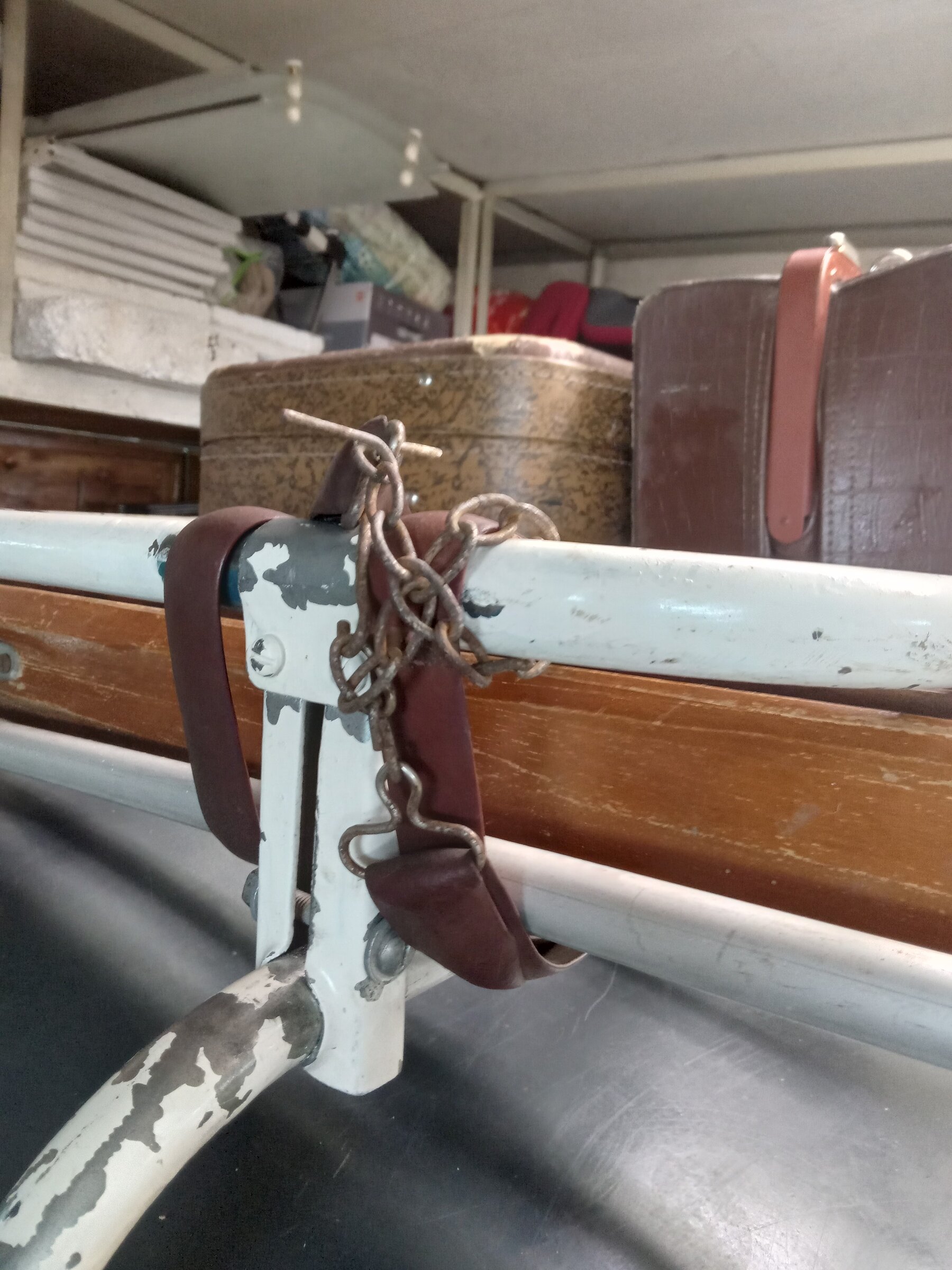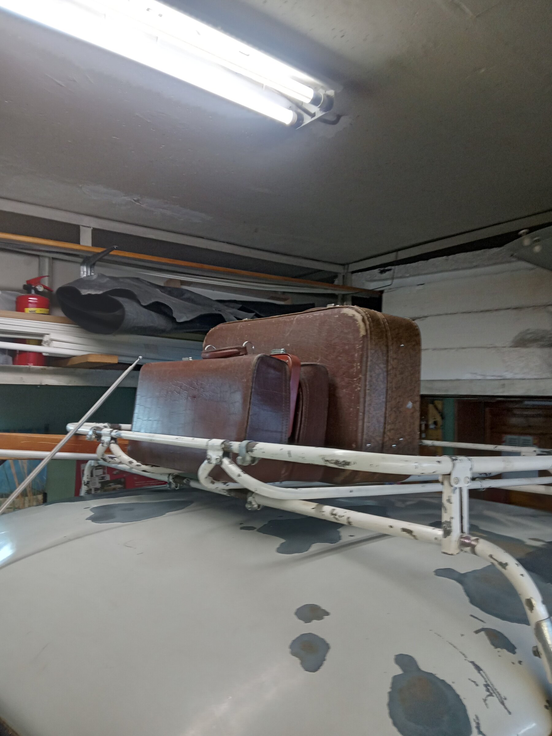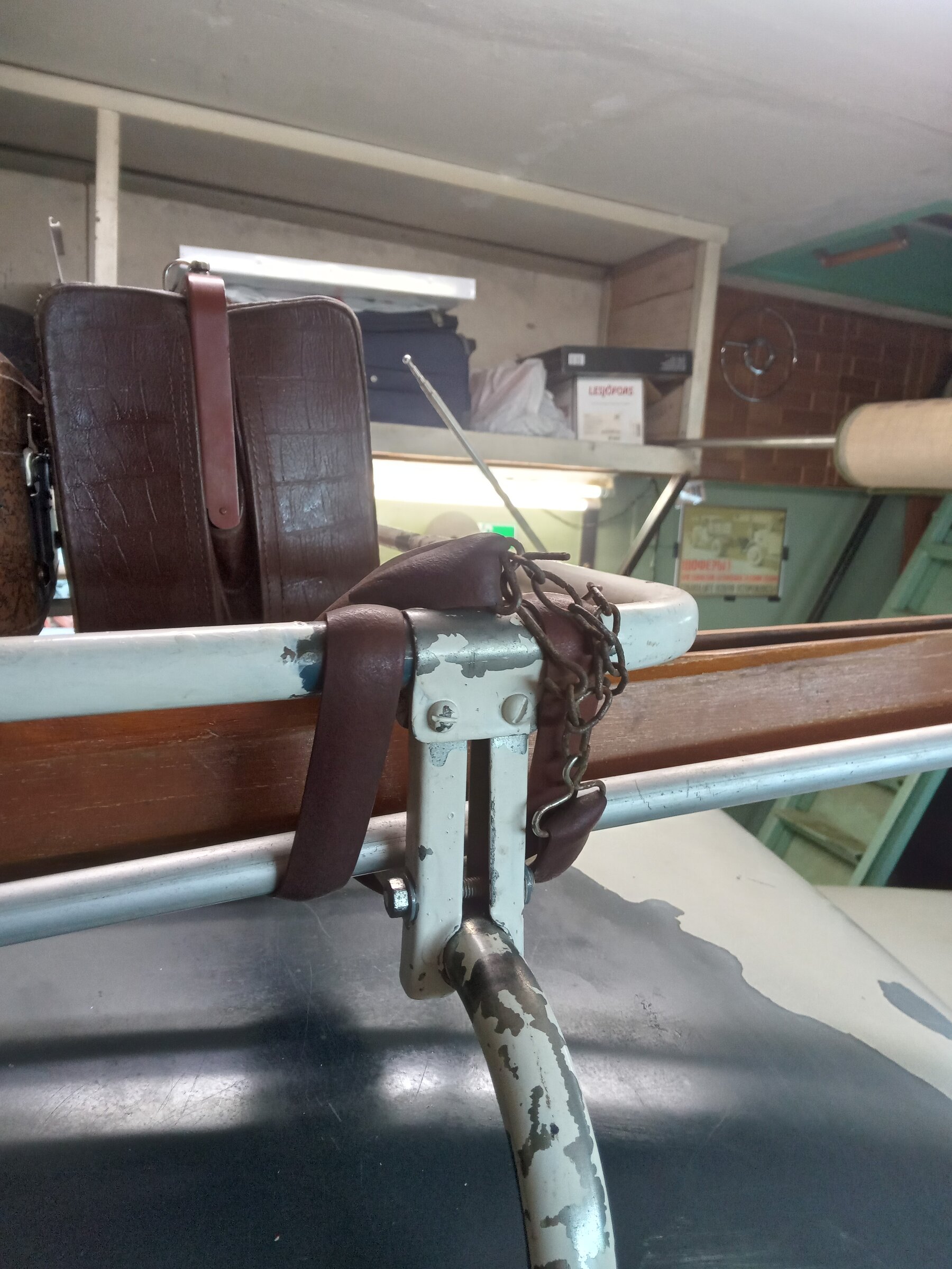 - болтики, гаечки, шайбочки, плюсом очистил от "поганой" краски крепёжные элементы - стойки, стяжки. Чиститься краска легко - ножом колупнёшь и отчищается, даже ногтём - "скрябыешь" и она (краска) отшелушивается. В общем четыре соединительные закладные багажника сделанные из металла и уже заржавелые - в песочку и далее в цинк. А вот краску с оцинкованных трубок багажника - летом ножичком или смывкой краски очищу. Вот пока так получилось. Лыжи старые и саквояж с чемоданом для придания образа на выставках (да впрочем и по городу пойдёт рассекать на выходных