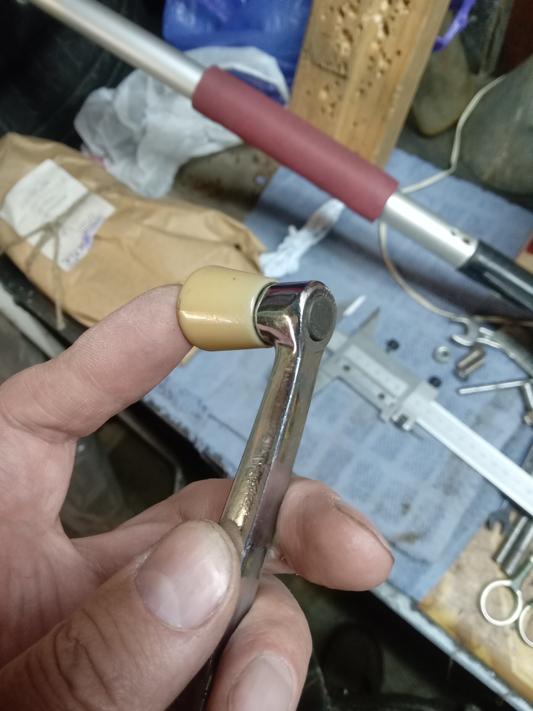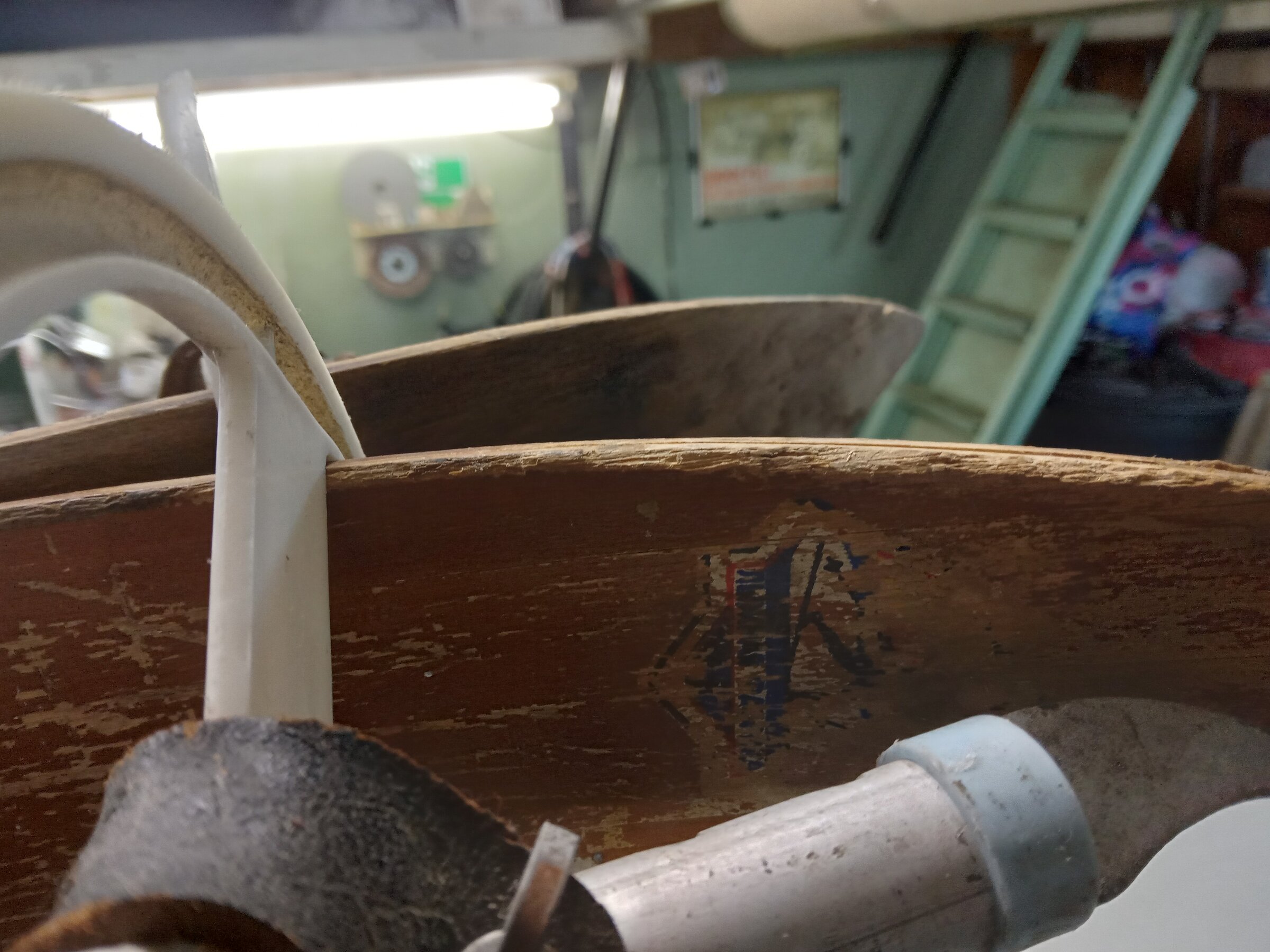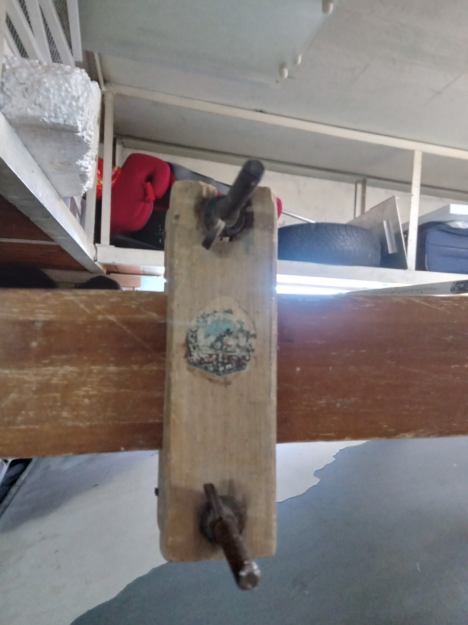 - болтики, гаечки, шайбочки, плюсом очистил от "поганой" краски крепёжные элементы - стойки, стяжки. Чиститься краска легко - ножом колупнёшь и отчищается, даже ногтём - "скрябыешь" и она (краска) отшелушивается. В общем четыре соединительные закладные багажника сделанные из металла и уже заржавелые - в песочку и далее в цинк. А вот краску с оцинкованных трубок багажника - летом ножичком или смывкой краски очищу. Вот пока так получилось. Лыжи старые и саквояж с чемоданом для придания образа на выставках (да впрочем и по городу пойдёт рассекать на выходных