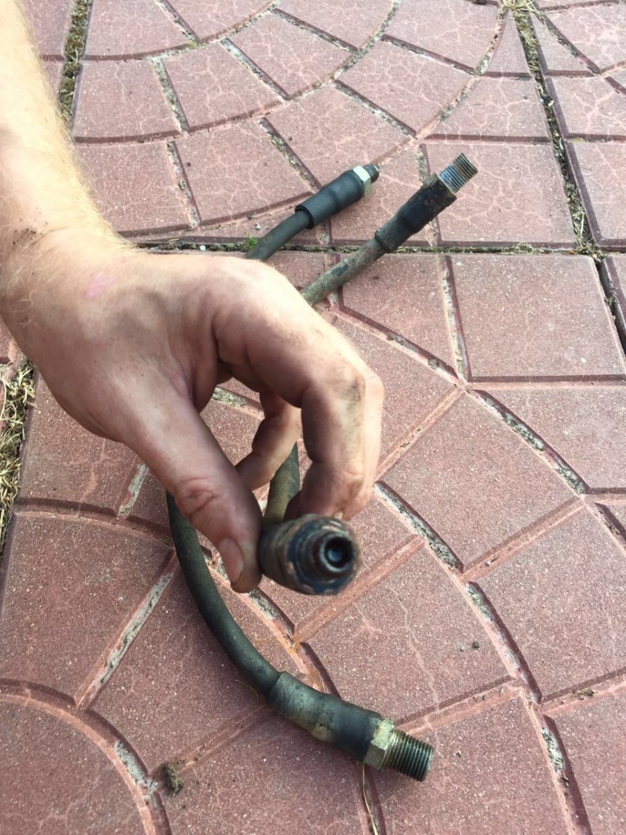 Посмотреть вложение 72820 Товарищи! Я о своем. Мои симптомы описал ранее (неразтормаживались передние колёса) Заменил передние тормозные шланги на УАЗовские (оказывается давно у меня валялись) оба. Теперь тормозит, разтормаживается - всё звон! Спасибо, что натолкнули меня на то, что я еще лет 10 назад должен был сделать. Подгружу фото снятых шлангов: они ужасны, хотя есть такой у меня новый (тоже в запасах валялся), так его ртом-воздухом тяжело продуть было, уазиковские - продувались легко. Жаль, конечно, т.к. люблю аутентичность.((Соответственно родной новый торм шланг (69-го года судя по надписи выпуска) помещаю в музэй...