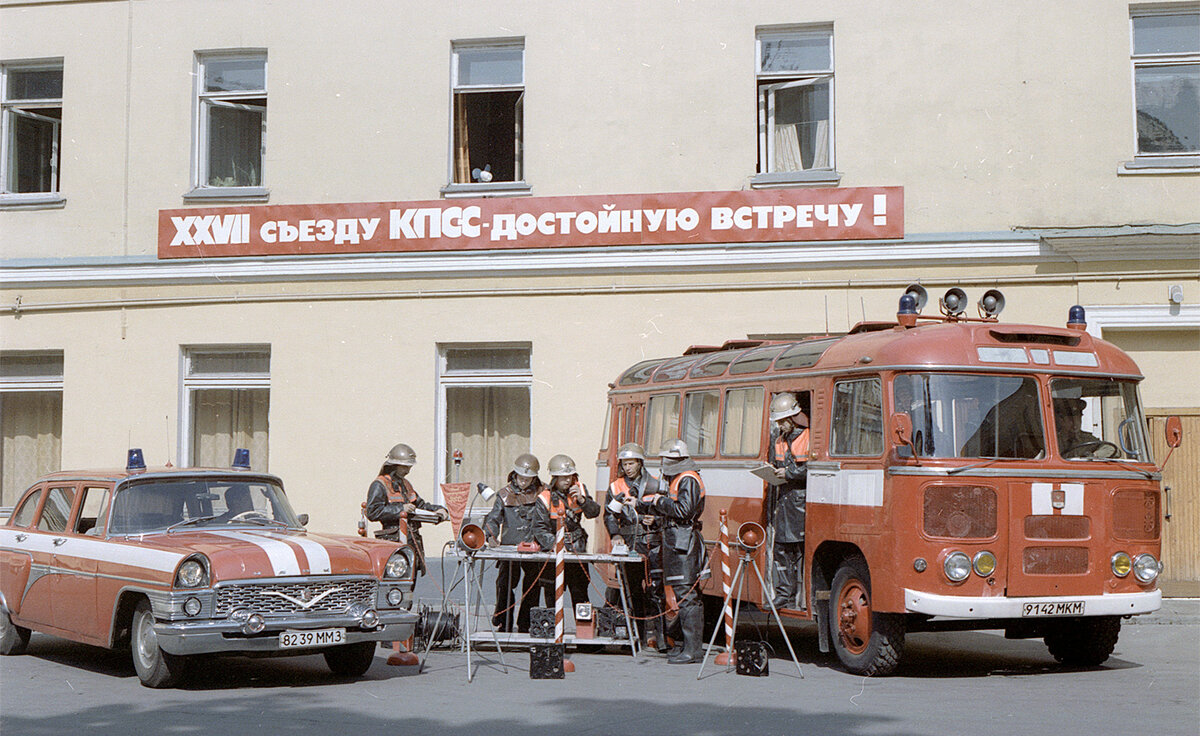 А чайка слева в Мск называлась "Летучий голландец", принадлежала начальнику пожарной охраны по Мск, появлялась на пожарах в местах массового скопления людей. Когда горел наш институт Минх и ГП в 87 году, приезжала на час, штаб провел совещание и она исчезла...Штаб пожаротушения Управления пожарной охраны ГУВД Мосгорисполкома проводит занятия.