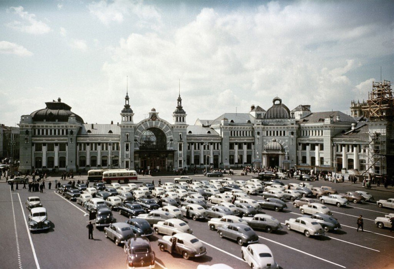 Может, моя тут тоже где-то есть…Стоянка такси на площади Белорусского вокзала 50-е годы