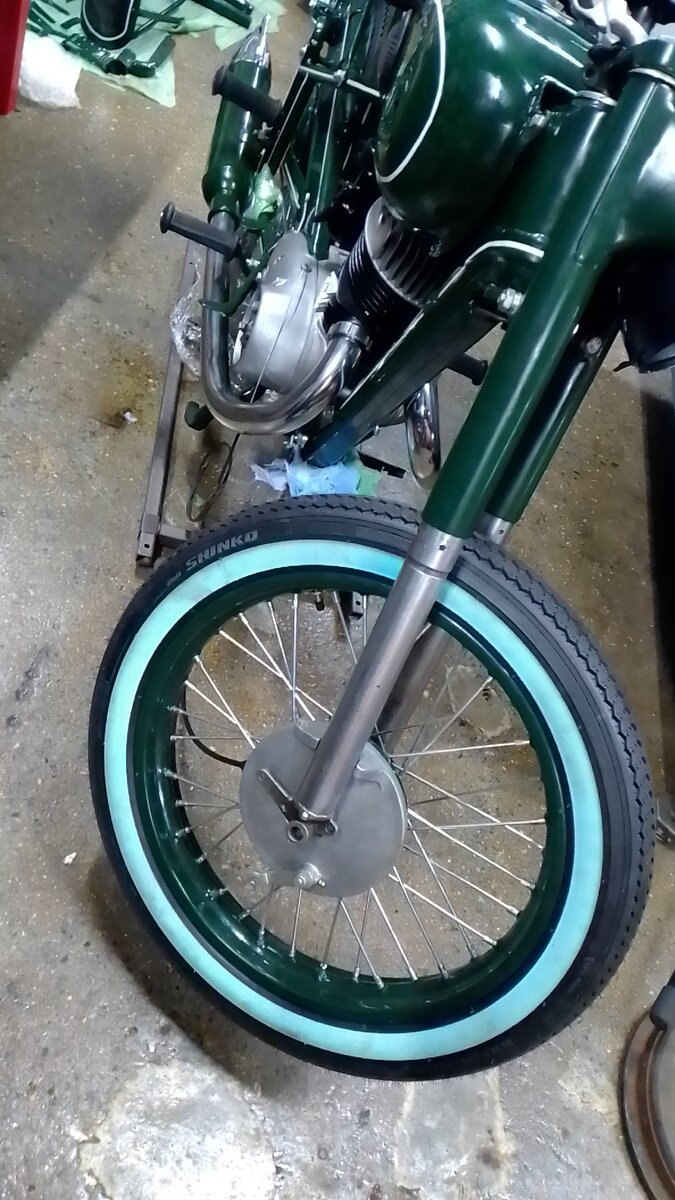 Красота!! Колени польские??Вот мотоцикл немного оброс , резину все таки поменяли на шинку направленную.