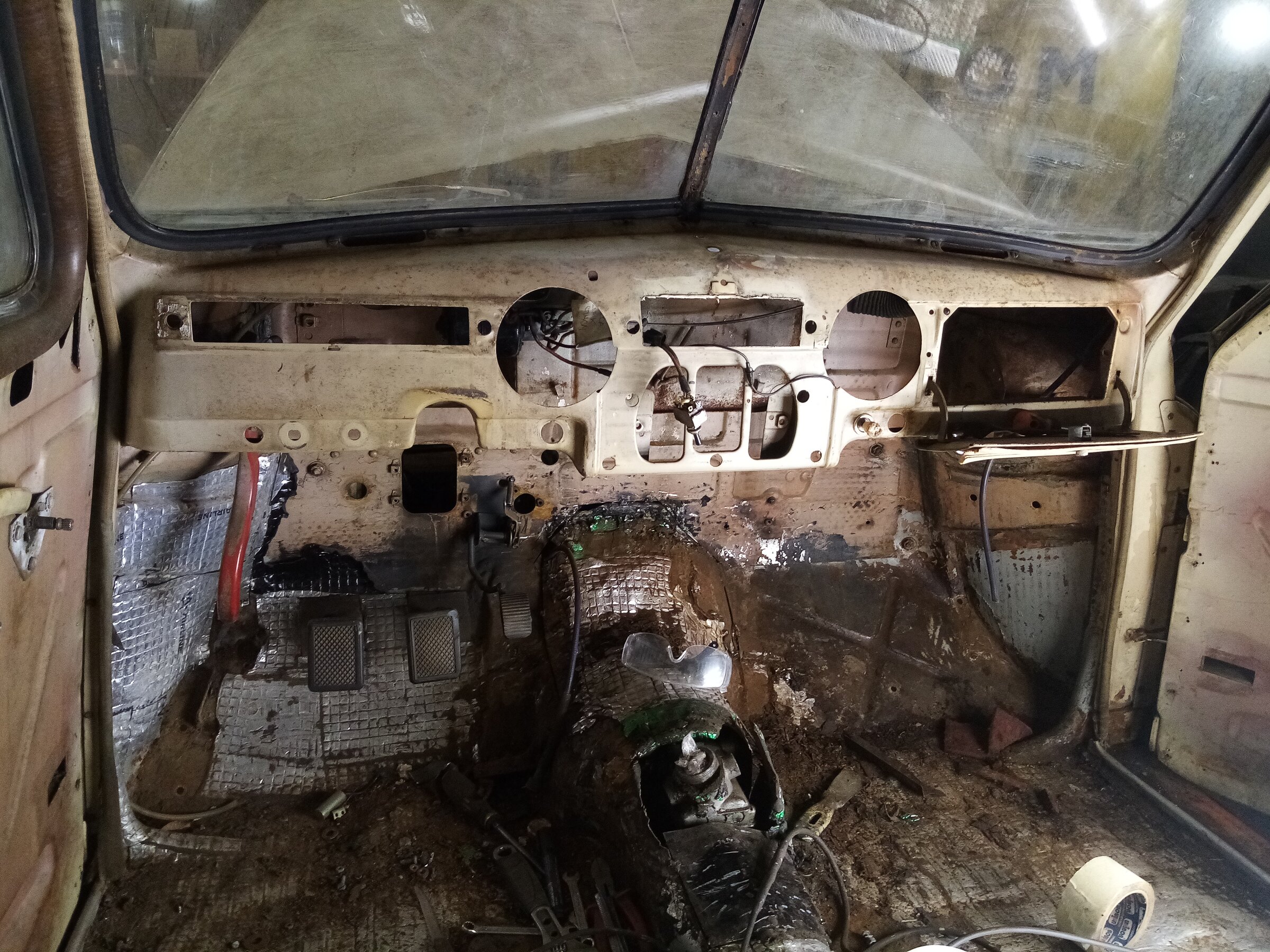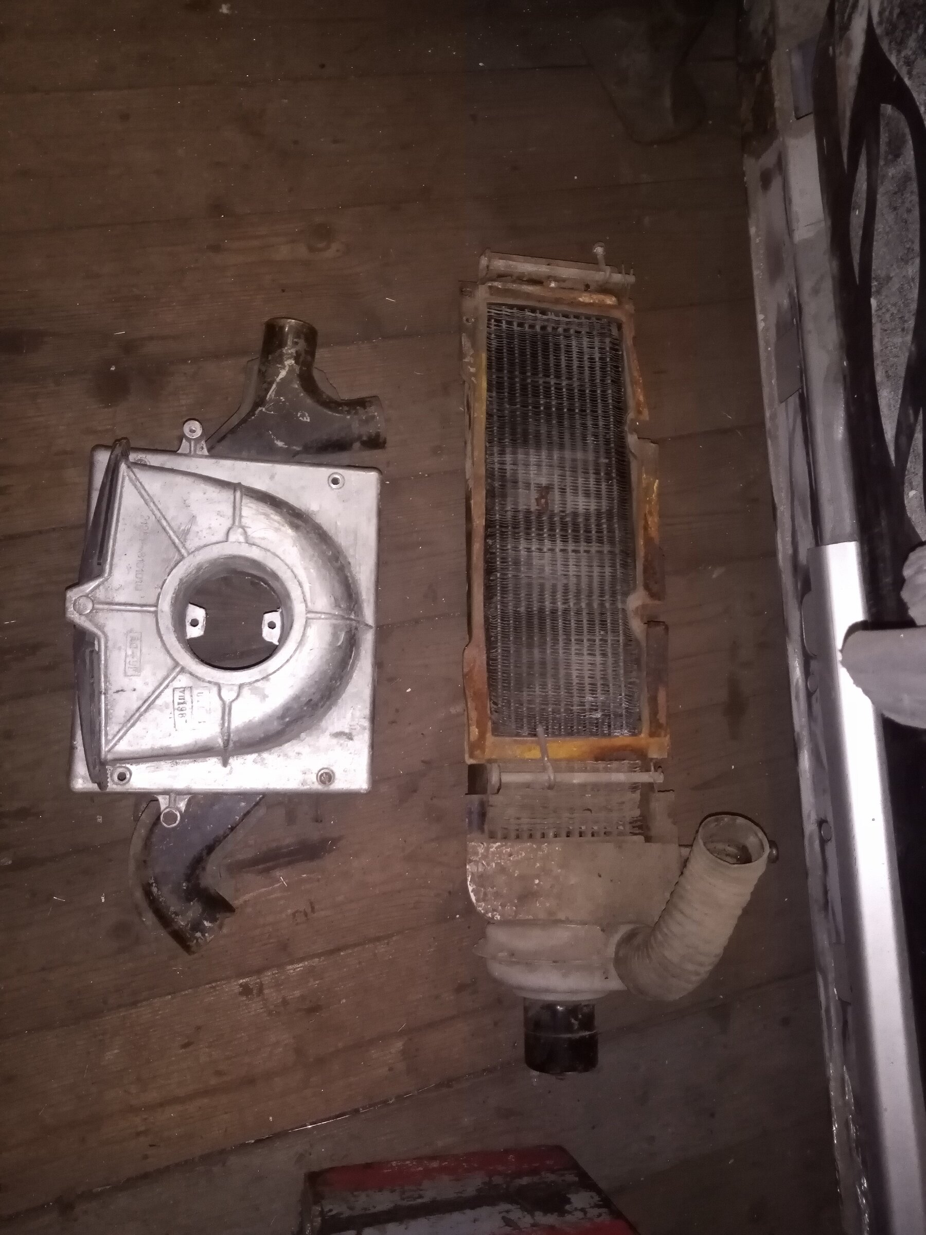 Еще печку расковырял, там прогнило все конечно. Думаю приколхозить комбо из корпуса печки от старого москвича и вазовского моторчика с радиатором.)