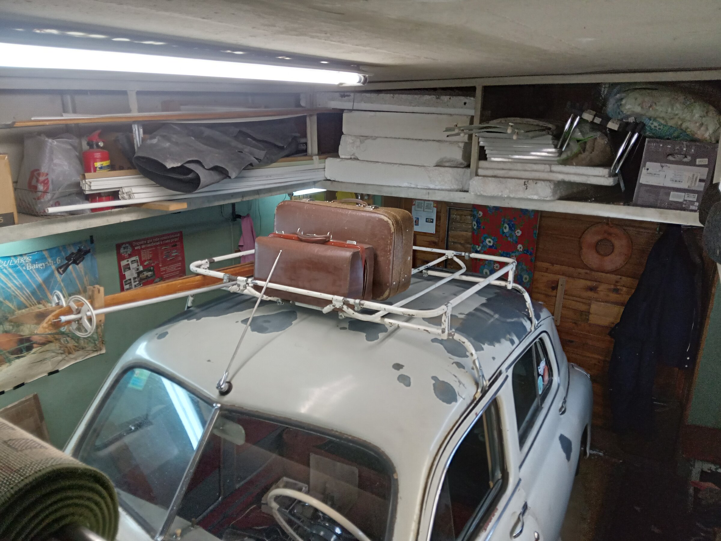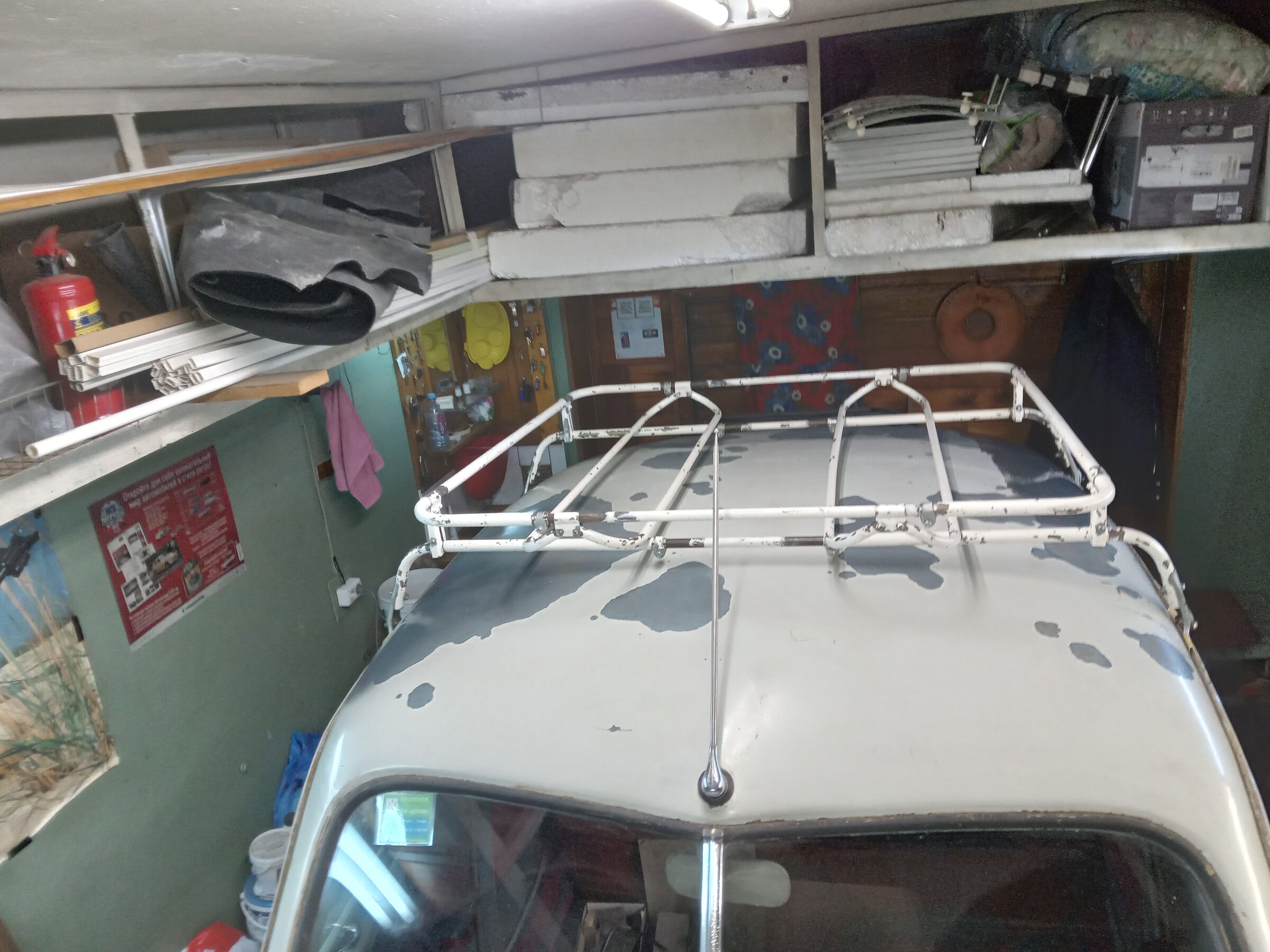 Дурная голова опять не даёт покоя...Всё таки багажник я на крышу "замастрячил":cool:. Отдал мне его товарищ Тимур года так два назад. Он себе купил его (багажник) на Москвич...но по виду и по толщине трубок - это явно не для Москвича штукенция. По итогу отдал мне. Собрал я его чуток помучавшись, куда и что и как крепить, поскольку багажник был разобран в ноль. Что по итогу имеем: Весь багажник - оцинкован. Цинк - шикарный, но покрашен бежевой краской...бля..ть зачем непонятно, но факт, с коим надо смирится. Заменил все крепёжные элементы багажника заёбаны..е и вдобавок окрашенные:mad: - болтики, гаечки, шайбочки, плюсом очистил от "поганой" краски крепёжные элементы - стойки, стяжки. Чиститься краска легко - ножом колупнёшь и отчищается, даже ногтём - "скрябыешь" и она (краска) отшелушивается. В общем четыре соединительные закладные багажника сделанные из металла и уже заржавелые - в песочку и далее в цинк. А вот краску с оцинкованных трубок багажника - летом ножичком или смывкой краски очищу. Вот пока так получилось. Лыжи старые и саквояж с чемоданом для придания образа на выставках (да впрочем и по городу пойдёт рассекать на выходных:)).