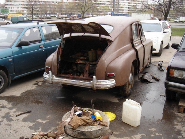 К обивке потолка были еще после попытки угона началась ее долгая реставрация....ну или восстановление,кому как больше нравится,которая продолжается по нынешний 2018 год,в этом году машина уже поедет своим ходом.