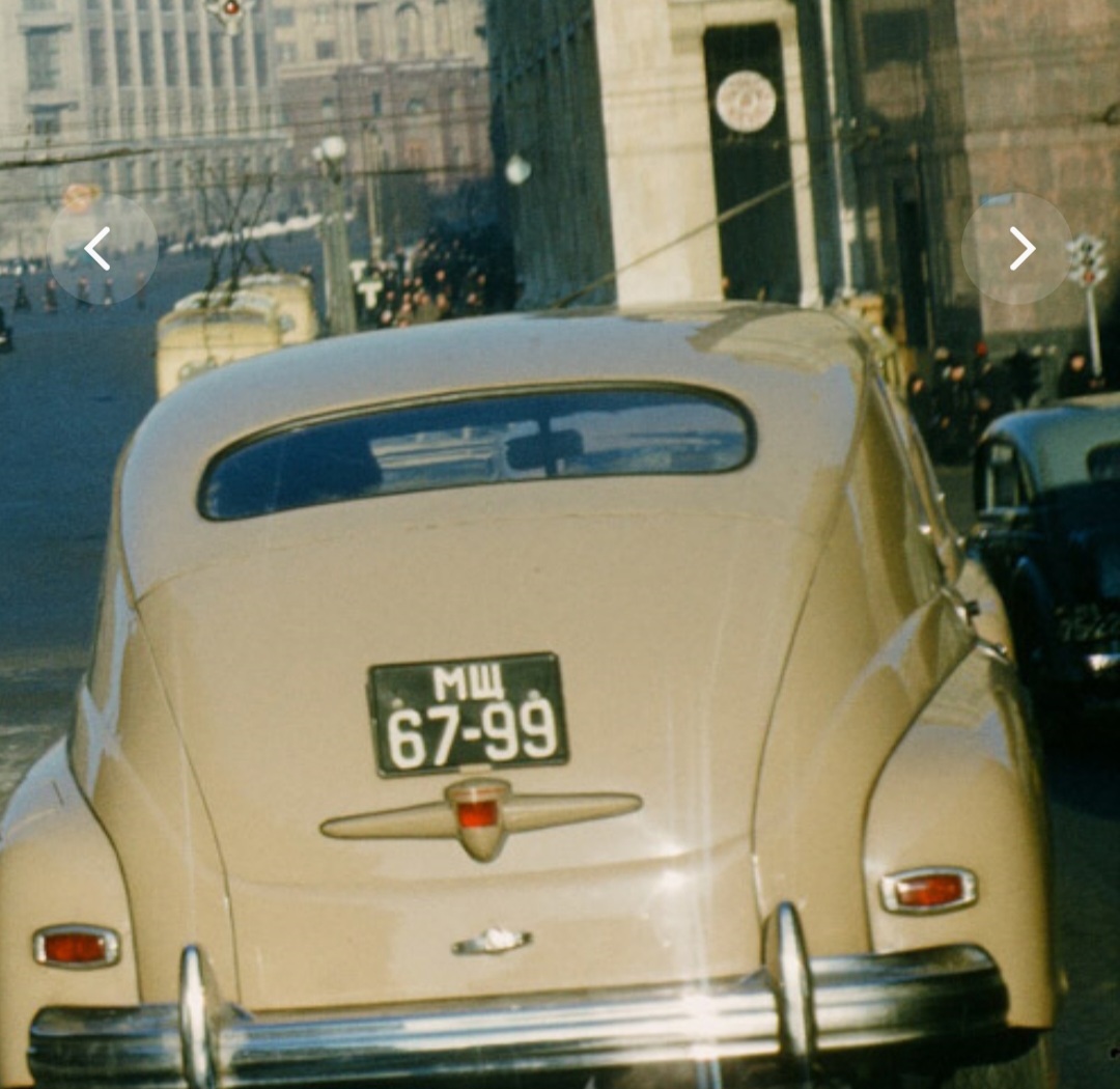 Рассматривая цветные фотографии старой Москвы, где безусловно присутсвует большое количество "Побед" обратил внимание на еще один факт ранней птички( 1й как многим известно это малое стекло подсветки номера) а тут еще и красная полоса.