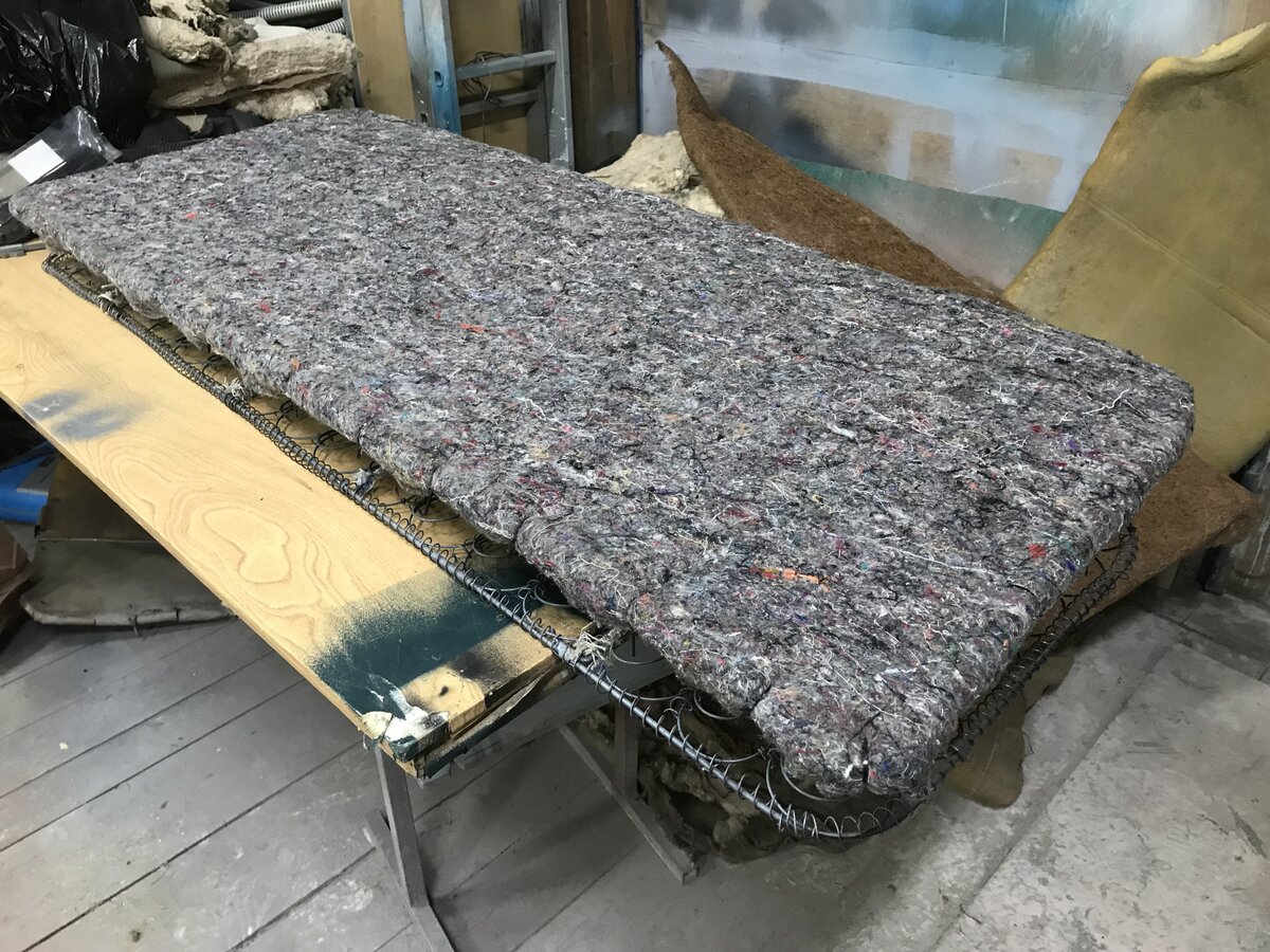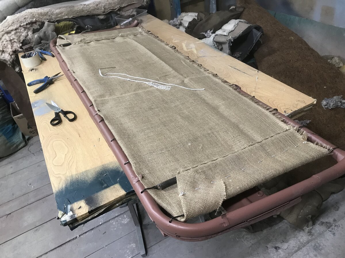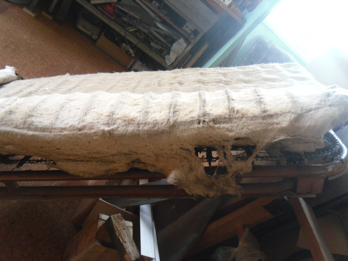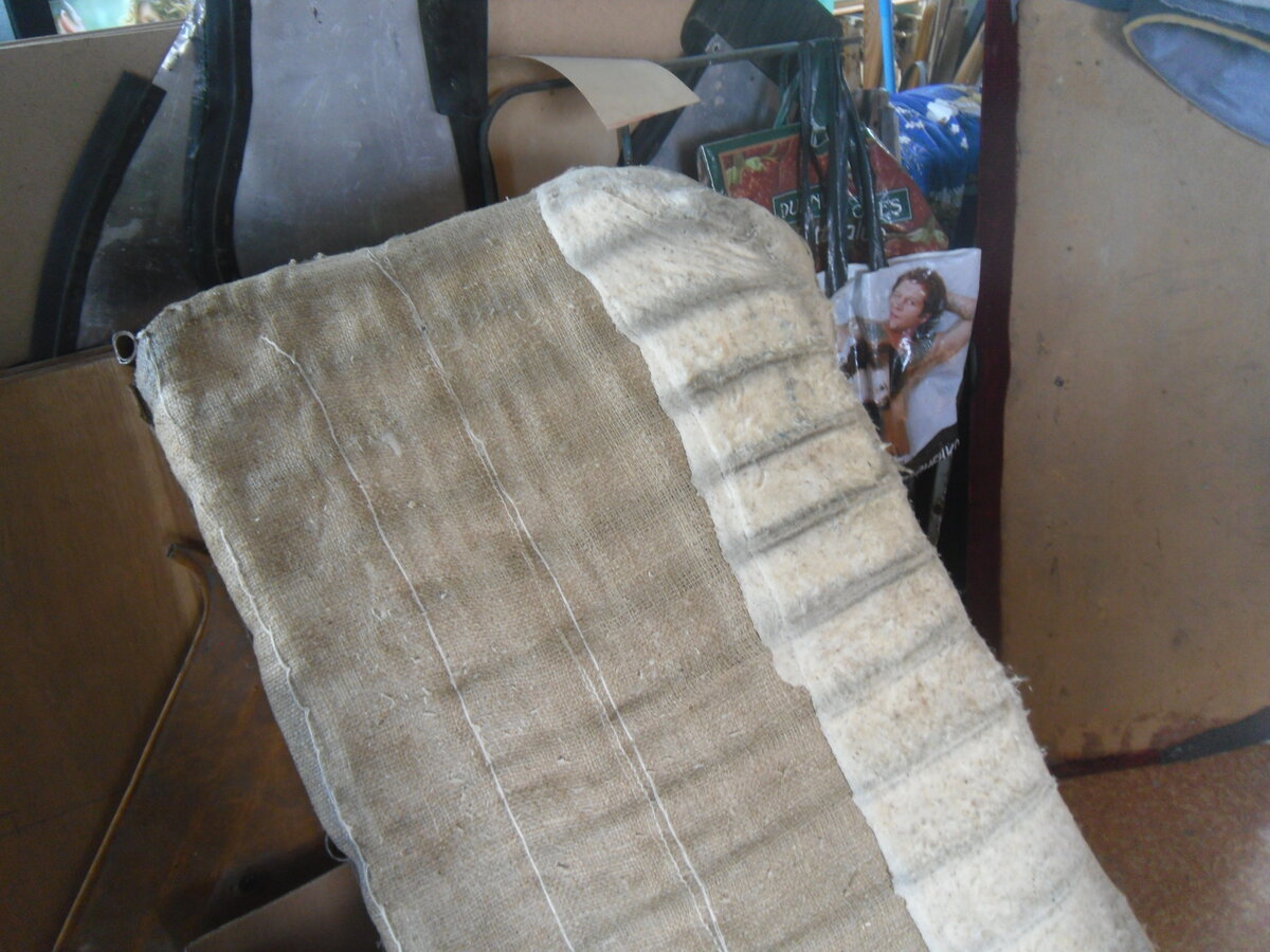 3. Вопрос по ватину. На седьмом, восьмом и девятом фото. Ватин не полностью закрывает сверху мешковину, а только ближе к концу сидушки и по бокам?, То, что между мешковинами на сидушке внутри ватин - я понял, он по полной ширине там, а сверху?