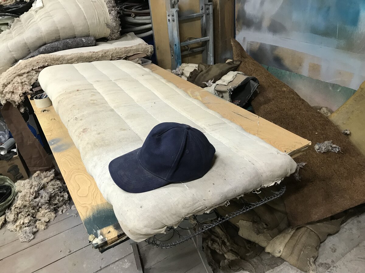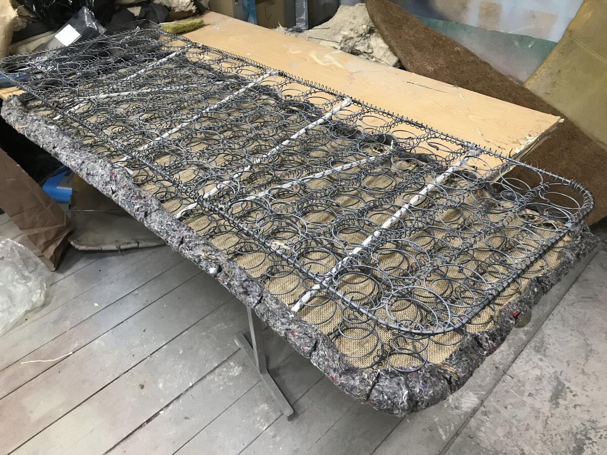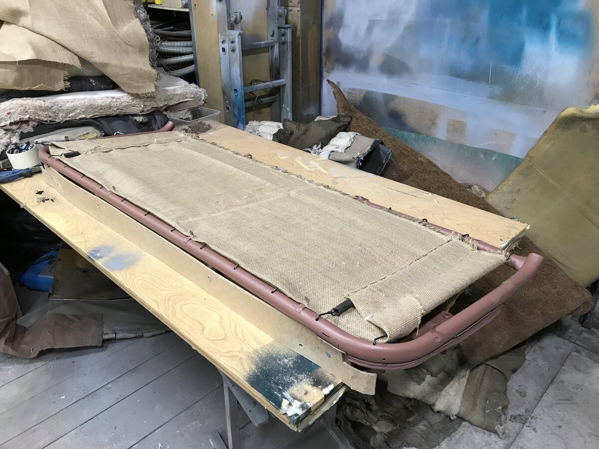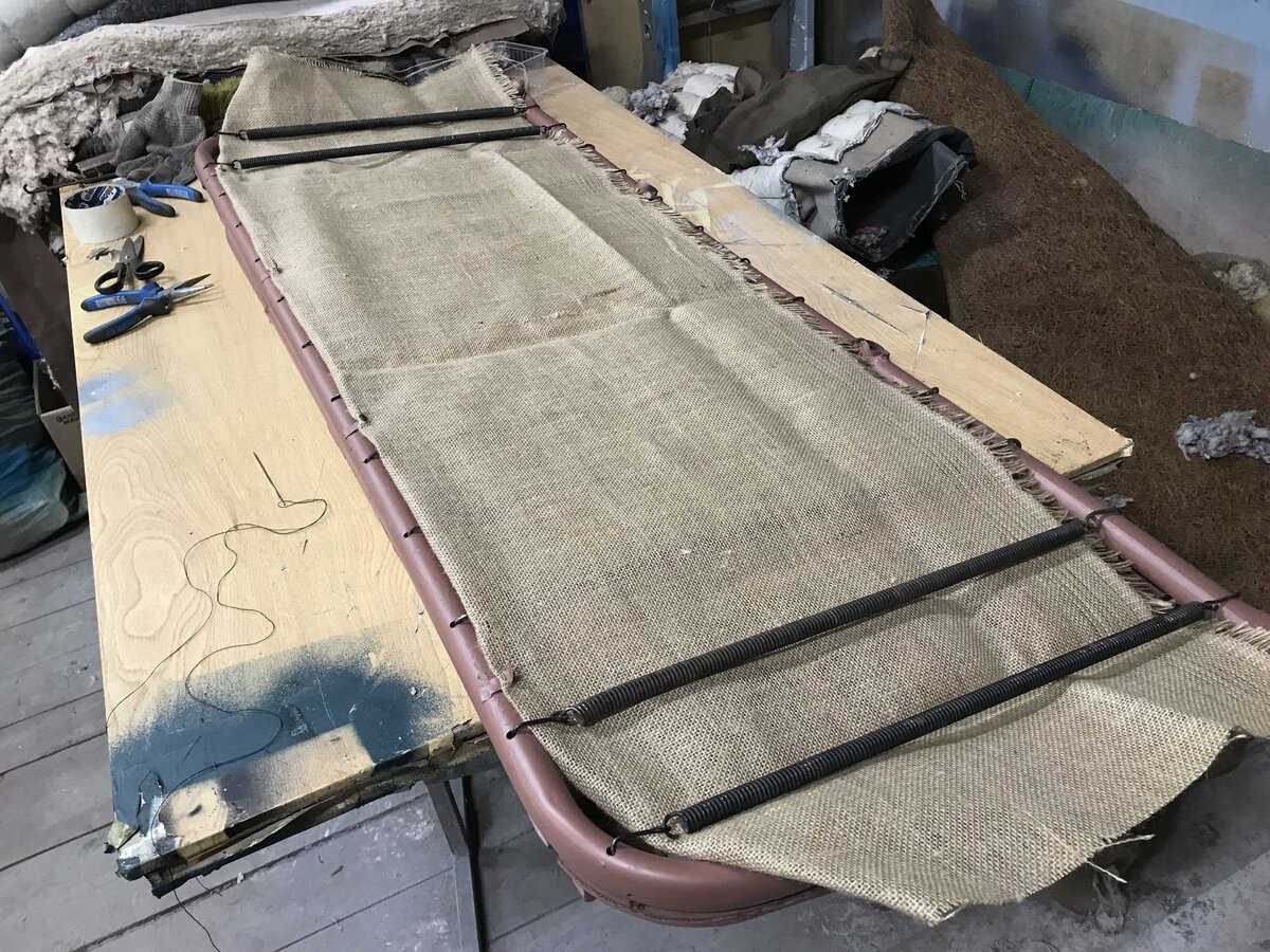 3. Вопрос по ватину. На седьмом, восьмом и девятом фото. Ватин не полностью закрывает сверху мешковину, а только ближе к концу сидушки и по бокам?, То, что между мешковинами на сидушке внутри ватин - я понял, он по полной ширине там, а сверху?