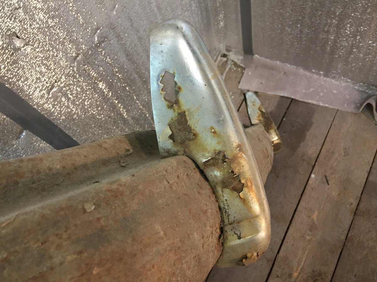 Две нижних закладных утеряны. Гнили почти нет. Есть поверхностная коррозия. Пару полос «вшуточку» были отпесочены, видно на фото. Есть косяк с геометрией предпоследнего бруса, косяк решаемый.